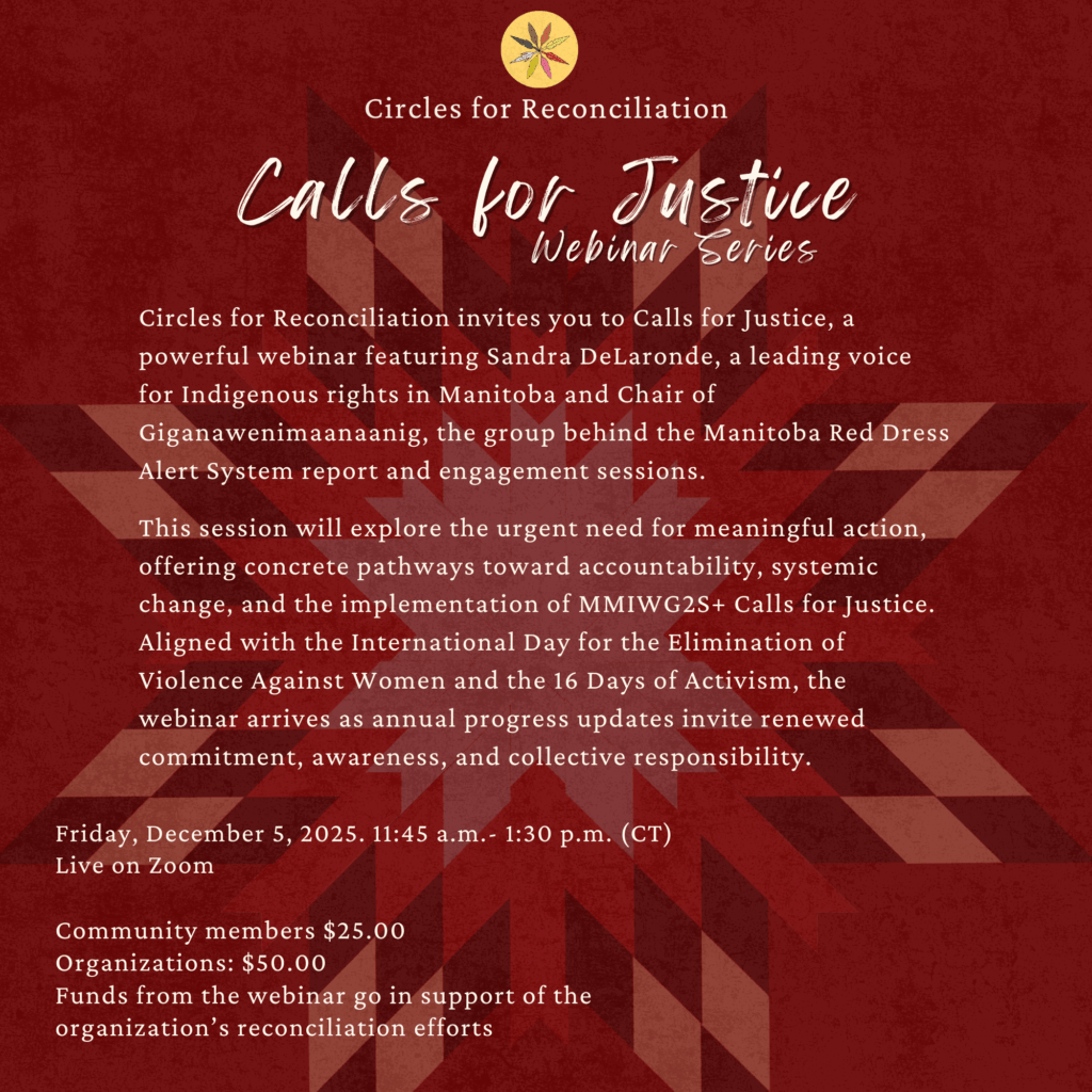 Circles for Reconciliation is pleased to announce our webinar. This webinar is designed to further engage our waiting and patient participants for assignment to the circles. It will provide information to continue to “create new relationships that are based on mutual recognition, mutual respect, sharing and mutual responsibility”. (TRC 2015).